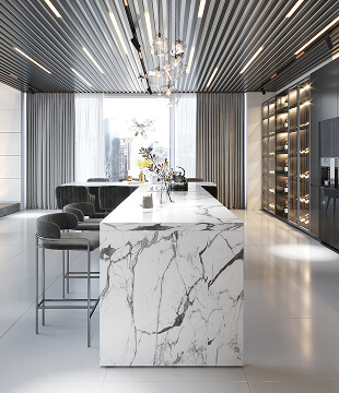 The slabs are then polished to create a smooth, polished surface. This process may include grinding, sanding, and polishing the marble surface.